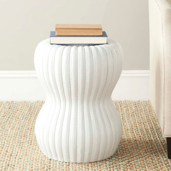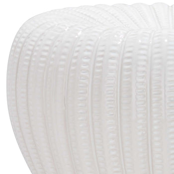 Sculptural beauty for the patio, garden, or living room, the Hour Glass Garden Stool is a study in serenity with its clean white glaze on textured ceramic. Use this charming piece by itself as an artistic accent or place several in a cluster for decorative drama indoors or out.