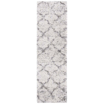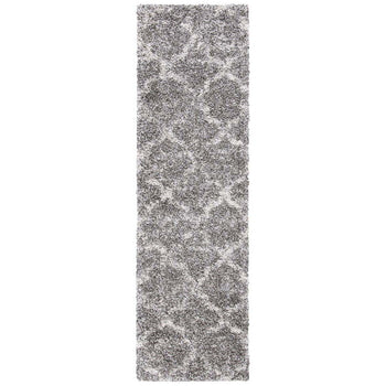 The tasteful Ivory/Grey color palette exudes a serene and inviting atmosphere. Upon closer inspection, the rug reveals a subtle trellis pattern, adding an understated elegance that complements a variety of interior styles. This exquisite runner embodies both luxury and practicality, transforming any passageway into an elegant and comfortable path.