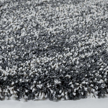 The rug features a captivating blend of dark grey and ivory hues, creating a harmonious contrast that will complement a wide range of interior styles. The pattern visible in the image showcases a subtle, speckled design that exudes a modern aesthetic while providing a versatile backdrop for your furniture.