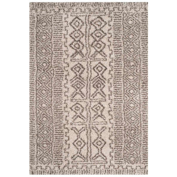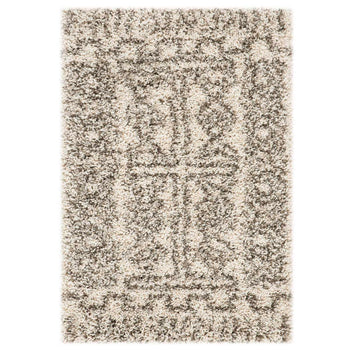 Introducing the latest addition to your home decor, an exquisite 2' X 3' accent area rug that combines comfort with elegance. This Ivory/Grey piece showcases a charming shag-bohemian style that effortlessly complements any room setting.