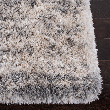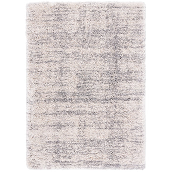 Elevate your living space with the luxurious comfort and modern elegance of our 9' x 12' Ivory/Grey area rug. This large rectangular shag rug, boasting a generous height of 2 1/2 inches, adds a plush, opulent feel beneath your feet, ensuring a cozy yet sophisticated experience in any room it adorns.