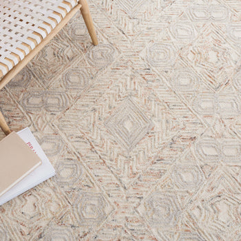 The design featured on this rug showcases a harmonious geometric pattern with hints of tribal inspiration, adding visual interest and timeless elegance. Its low pile height ensures minimal shedding and easy maintenance, while the hand-tufted construction reflects a high standard of craftsmanship.