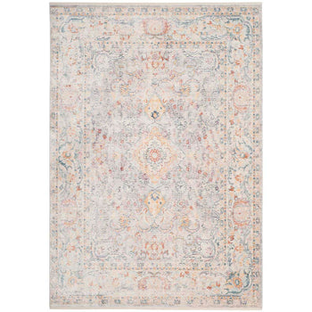The design of this alluring rug features a subtle, ornate pattern with hints of floral motifs and intricate borders. The light grey base is beautifully accentuated with cream highlights and pops of gentle colors, giving the traditional pattern a modern and versatile appeal that can seamlessly integrate into both contemporary and classic interiors.