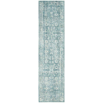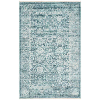 The intricate beauty of the area rug is emphasized through its harmonious blue and ivory colors, creating a serene foundation for any room. The visual charm of the rug's pattern depicts traditional motifs with a faded effect, offering both vintage allure and contemporary sophistication. This blend of old-world charm and modern aesthetics is mirrored in the refined composition of 60% Viscose and 40% Polyester fibers, providing a lustrous sheen, supreme softness, and easy maintenance.
