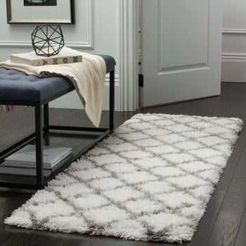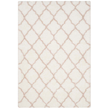 The charming shag and Flokati style of this rug adds a layer of dimensional texture to your floors, guaranteeing that it will become the focal point of any space. Featuring a timeless diamond trellis pattern, the design exudes a classic yet contemporary vibe that is versatile enough to blend seamlessly with your existing decor.