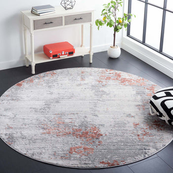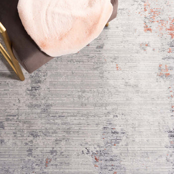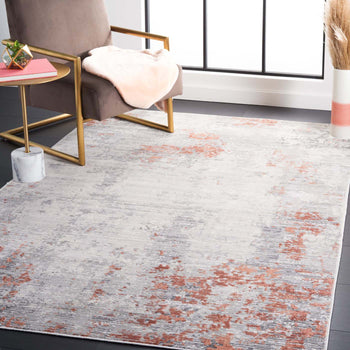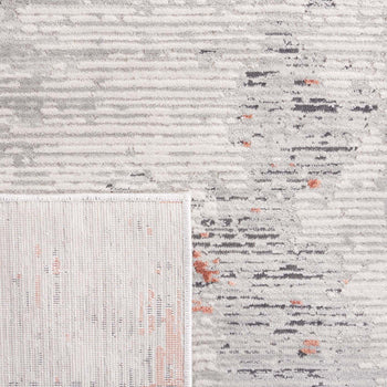 Discover the perfect blend of modern design and comfort with our 4' x 6' area rug, a stylish addition to any room. Crafted with precision on power looms, this small rectangular rug boasts a height of 3/8 inches, creating a soft yet durable surface. The beautiful interplay of grey and light grey colors is accentuated by subtle hints of a warm, coral-like tone, which provide an elegant yet vibrant pattern that can complement a wide range of interiors.