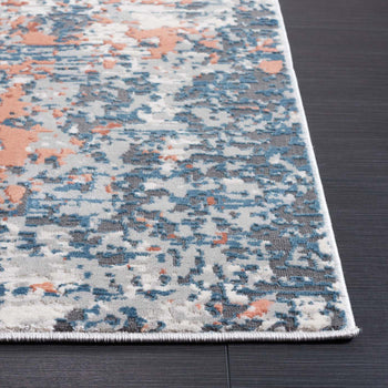 Direct from Turkey, this rug is a representation of sophistication and quality. The versatile color palette, accented with dynamic patterns in shades of coral, reveals a distressed abstract design that brings a modern yet timeless appeal to diverse decor settings.