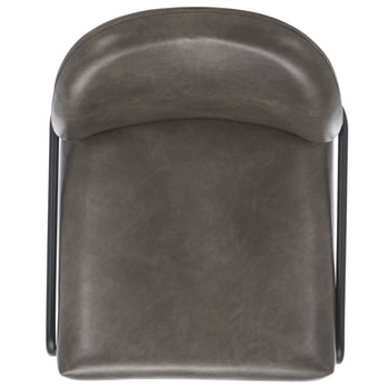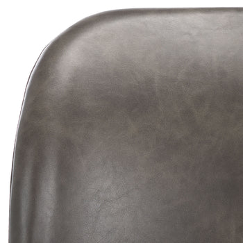 Lend a fashion forward upgrade to your bar and high dining areas with our Ivey bar stool. Our airy and sophisticated bar stool packs a dose of style and comfort. The back is beautifully sculpted and curved to promise a comfortable stay. Its generously padded back and seat are covered in breathable leather in a versatile grey hue. Complemented with a slender black metallic base, our bar stool makes any space feel open and airy. It can add a dose of comfort and style to your kitchen island, bar, or high dining area.
