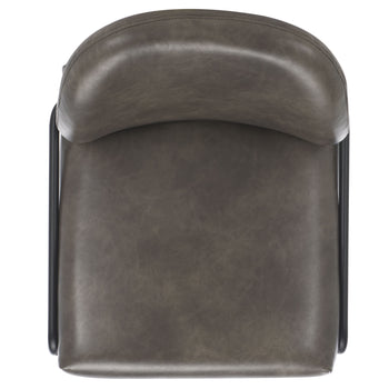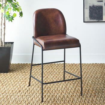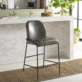Bring sophisticated charm to your casual dining with our Ivey counter stool. Our airy and sophisticated counter stool packs a dose of style and comfort. The back is beautifully sculpted and curved to promise a comfortable stay. Its generously padded back and seat are covered in breathable leather in a versatile hue. Complemented with a slender black metallic base, our counter stool makes any space feel open and airy. It is perfectly scaled to bring comfort and style to your kitchen countertop, high dining area, and work tables.