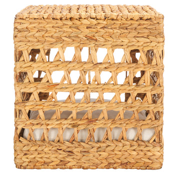 The inviting cushion offers a soft landing after a long day of play. Whether your furry friend curls up for a nap or lounges leisurely, the Ivie Pet Bed ensures a serene spot to unwind. Its metal frame adds durability, while the woven water hyacinth brings a touch of nature indoors. The cushion is carefully filled with soft cotton and foam to offer gentle support.