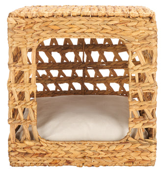 Transform your pet's rest into a cozy retreat with the Ivie Pet Bed with Cushion in Beige and Natural. Crafted with a blend of materials including metal, water hyacinth, cotton, and foam, this pet bed is designed to provide comfort and style. The elegant beige exterior combined with natural accents complements any home decor seamlessly.