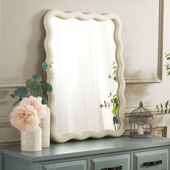 Introducing the Izara Mirror, a chic and captivating addition to any space. Crafted with a sturdy wooden frame, this piece marries elegance with simplicity. Its unique wavy silhouette brings a modern twist to classic design, offering a refreshing visual appeal that complements a variety of decor settings.