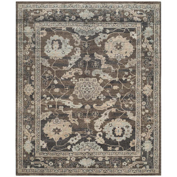 Intricately patterned, the rug features traditional motifs that are both timeless and enchanting. The design encapsulates floral medallions, ornate borders, and delicate botanical details, creating a rich tapestry that draws the eye and captivates the imagination. Its versatile hues of deep grays and neutral tones ensure that this rug will harmonize with your existing decor while adding a touch of timeless luxury.