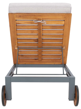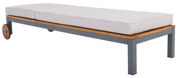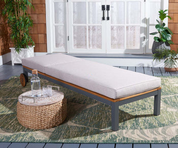 Resort poolside relaxation comes to your outdoor living space with this luxurious Jackman Lounge Chair. Jackman's plush grey cushions and natural wood finish seamlessly accent any Decor scheme, and built-in wheels allow for easy transport from the sun to the shade.