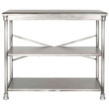 Emblematic of versatile transitional style, the Jamison Medium Bookcase combines simplicity with elegance. A sleek iron frame accentuated by a classic X brace and wooden shelves are all finished in fashion forward dark silver.
