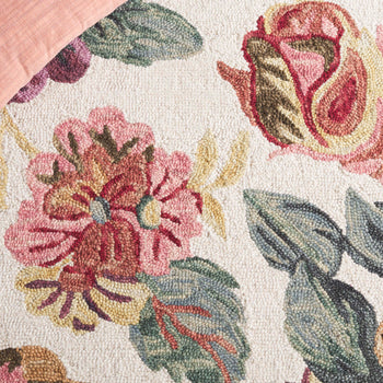 The runner's ivory background is the perfect canvas for the vibrant reds, along with a harmonious medley of pinks, purples, grays, and golds that together weave an enchanting floral pattern. Each detail of the design has been carefully considered to create a visual feast that's both classic and contemporary.