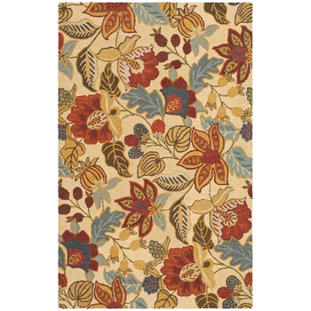 The warm beige base of the runner is gracefully adorned with a multi-colored floral pattern that exudes a sense of natural charm and classic style. Joyful bursts of red, subtle hints of blue, and a melange of earth-toned accents come together to create a carpet that's not just a floor covering, but a piece of art.