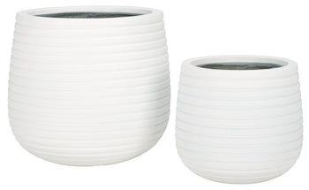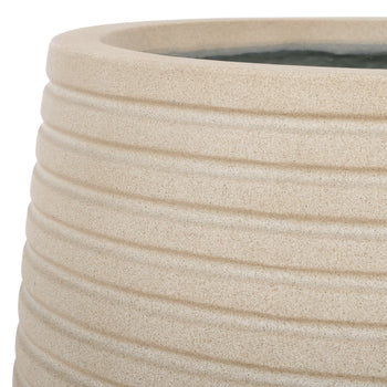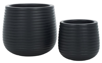 Artistic horizontal stripes encircle each planter, creating a visually appealing texture to enhance any plants or flowers you choose to nestle within. This design element adds an extra layer of interest, ensuring these planters will catch eyes and compliments in any setting.