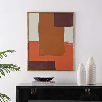 Brighten up your home with our modern and charming, Java Compilation framed wall art. The abstract composition plays with the scale and proportion of each rectangular shape to achieve a beautiful balance and poise. It is adorned in rich shades including salmon pink and golden brown to add a fresh and vibrant touch to your home. Printed upon paper, our wall art captures each brush stroke to serve as a standalone feature piece or offer visual impact to your gallery wall.