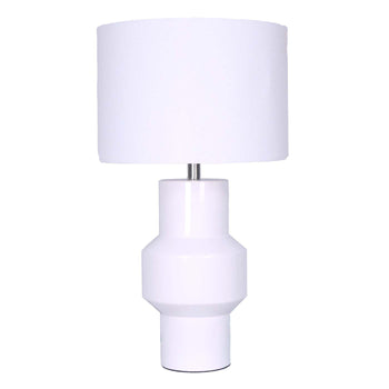 Bring a modern art feel to your Decor with this Javert Table Lamp. Sensationally styled in sleek white ceramic, Javert's geometrically angled silhouette gives an intriguing sense of motion and depth to any interior, perfectly balanced by its white drum shade.