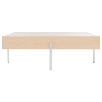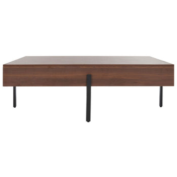 Invite modern elegance and warmth to your home with our Jaxith coffee table. Its chunky rectangular tabletop is enlivened with rich grains and tonal variations of wood. Enriched with organic beauty, our coffee table elegantly floats upon slender black metallic legs. The sleek and minimal profile of our coffee table opens up any space with a dose of warmth and style. It lends ample space to style and creates an elevated display of your favorite accessories.