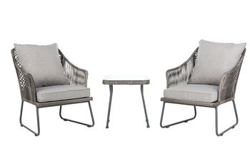 Travel no further than your own porch or patio to find a relaxing spot in the sun with the Jensen 3 PC Lounge Set. Lavishly cushioned pillows and refined rattan chairs and cocktail table come together beautifully in this perfect backyard set for two.