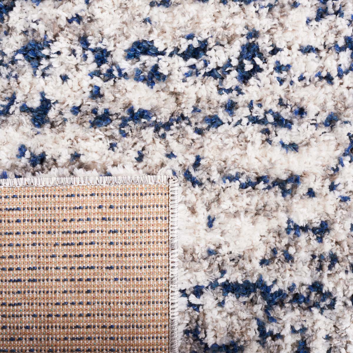 Originating from the renowned textile region of Turkey, this rug imbues your space with a Shag & Flokati style flair that instantly warms up any corridor or narrow space. The intricate patterns displayed on the rug, which you can appreciate in the image, speak to a sophisticated design palette of navy and ivory hues, merging modernity with timeless elegance.