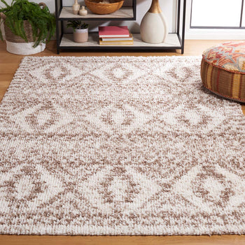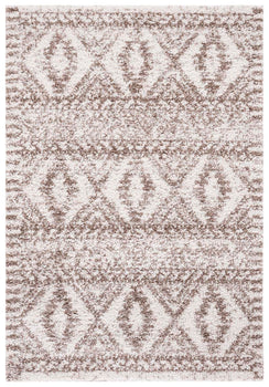 The alluring pattern on this rug, as depicted in the image, showcases a series of geometric motifs, bringing a modern yet timeless design to your home decor. The striking contrast between the taupe and ivory hues enhances the visual appeal, creating a captivating focal point for any room.