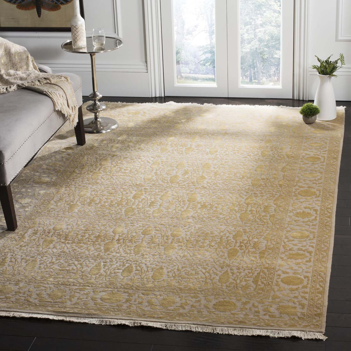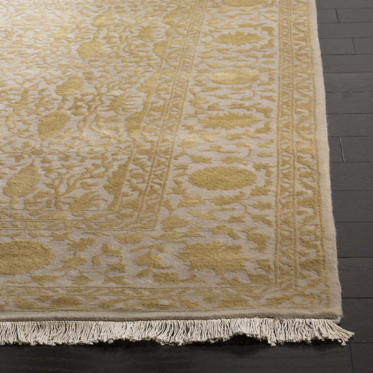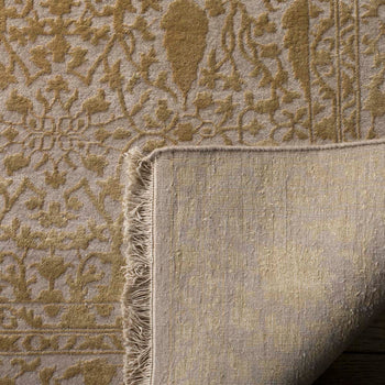 Carefully crafted by skilled artisans, this rug features an intricate pattern that showcases opulent floral motifs and traditional decorative elements woven in a symmetrical arrangement. The intricate detailing is a testament to the weavers' expertise and the long-standing rug-making traditions of India.