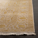 Introducing our exquisite hand-knotted accent rug, a marriage of sophistication and artisan craftsmanship that brings a touch of Indian heritage to your space. With its elegant ivory-on-ivory color scheme, this petite rug size 1'-6" X 2' offers a timeless allure suitable for the most refined tastes.