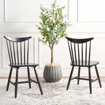 Bring a touch of timeless rustic charm to your Decor with this Jodan Dining Chair. A must-have in any classic-contemporary interior, Jodan's familiar Windsor spindle back and Thonet-inspired silhouette are thoroughly revitalized in a jet black finish. Sold in sets of two.