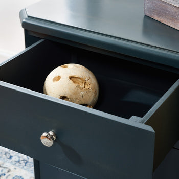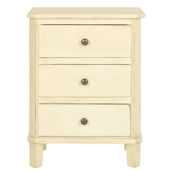 With its versatile transitional style, this Joe End Table is designed to complement any furnishings. Crafted of elm, Joe has three ample drawers with polished silver pulls for precious objects and everyday essentials. Ideal for adding a touch of soft farmhouse flair to the living room or bedroom.