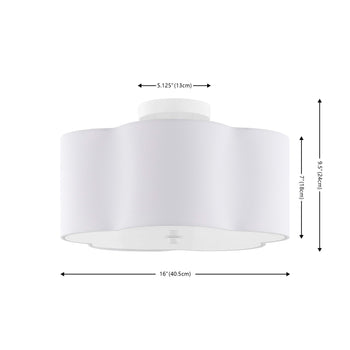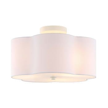 Illuminate your home with the grace and elegance of our Joeluna flush mount. Minimalistic and charming, our flush mount stands out with a beautifully tailored fabric shade. Its crisp curves and modern profile bring effortless charm and style to any room. Our white flush mount seamlessly blends and complements a variety of different styles and decor. It diffuses a soft ambient light to create a pleasant ambiance in your bedroom, kitchen, or dining area.