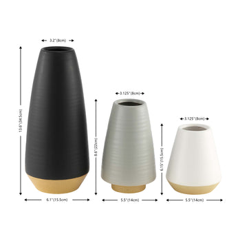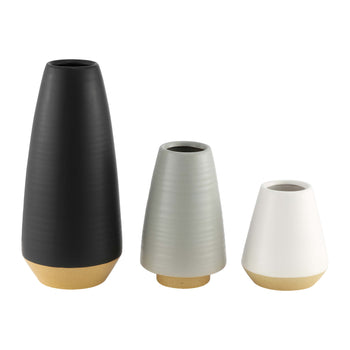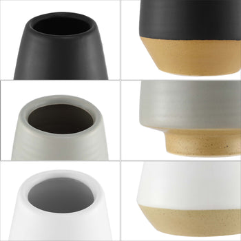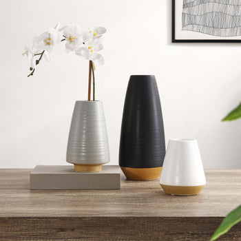 Embrace a sophisticated and stylish accent for your home with our Joetta vase set. The vase seamlessly tapers at the top to attain a beautifully minimalist profile. Glazed in a neutral palette of white, grey, and black, our vases can serve as a versatile and elegant addition. Its minimal and timeless profile remains perfect for making your faux botanicals and floral arrangement stand out. The vases can also be arranged in a modern grouping to instantly strike a visual impact.