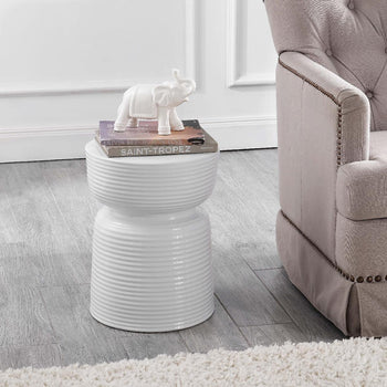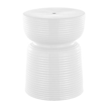 Embrace a modern and sculptural accent for your home with our Johari garden stool. Defined by soft, voluminous curves, the garden stool stands out with a graceful and eye-catching silhouette. Its smooth white glaze is enlivened with stunning ribbed detail to add character and charm to any corner. With a versatile and elegant profile, our ceramic stool remains an entertaining essential for any space. It can serve as an extra surface for holding your essentials or feature as a sculptural pedestal to display your plants and decor items.