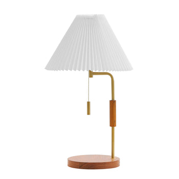 Crafted with a durable metal and wood body, this lamp is designed to complement your space with its enduring grace. A fabric shade sits atop, diffusing light to provide an even, comfortable illumination perfect for reading, working, or relaxing. The rich walnut base anchors the lamp, while the brass arm and accents lend an elegant contrast.