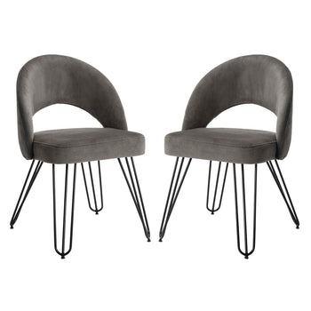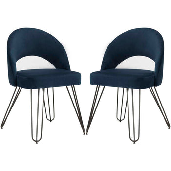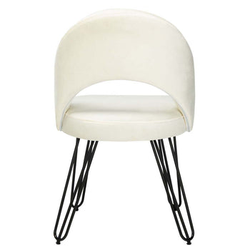 An unexpected find in a San Francisco flea market inspired this retro dining chair. Its cute, cut out style with soft velvet upholstery is perfect for adding elegance to any modern dining room or living room. Designers love its black hairpin legs.
