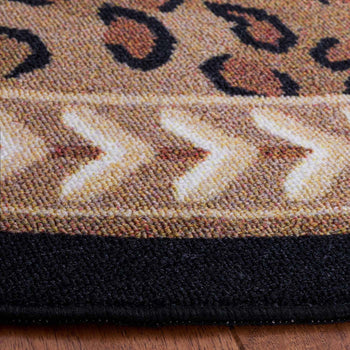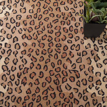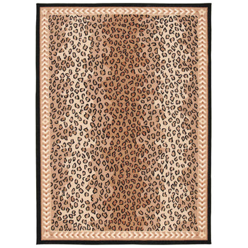 Featuring a mesmerizing beige and black leopard print design that immediately catches the eye, the small rectangle rug adds a touch of wildlife sophistication to your home decor. The intricate pattern framed by a subtle geometric border exudes confidence and seamlessly blends with a variety of interior styles.