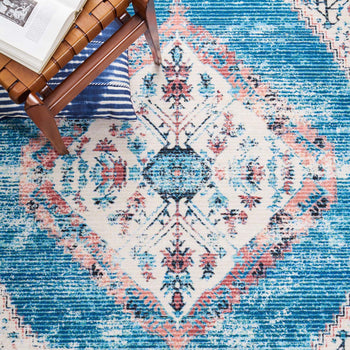 Elevate your living space with our enchanting Ivory/Blue area rug, a beautiful blend of tradition and modernity. Perfectly sized at 5'-5" X 7'-7" for versatile placement, this medium rectangle rug graces your home with a refined touch and fits seamlessly into an array of decors.