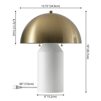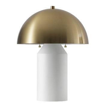 Crafted with a durable metal body and shade, the Jove Table Lamp is designed for enduring appeal and functionality. Its white base serves as a neutral foundation, allowing the brass shade to stand out as a chic and tasteful highlight. The lamp's clean lines and minimalist aesthetic make it versatile for various decor themes, from modern to traditional.