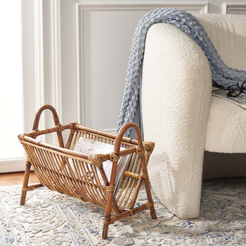 Keep clutter at bay with this boho-chic Jove Newspaper Rack. Ideal for holding magazines, flyers, unsorted mail, or other miscellany, Jove's honey brown wash rattan emanates breezy tropical vibes in any room.