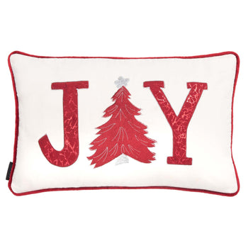 Bring a touch of seasonal cheer to your Decor with this festive Joy Tree Pillow. Delightfully designed with soft cream cotton and bright red piping, the stitched details on its holiday tree motif further enhance its decorative appeal.