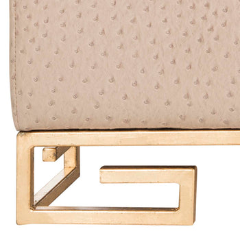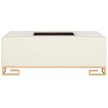 An exquisite pairing of form and function, this contemporary tray ottoman was inspired by the inimitable glamour and optimism of Old Hollywood. Ideal for entertaining, its decadent gold metal finish and cr?me upholstery frame its removable tray.