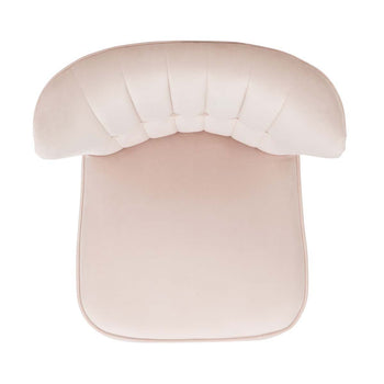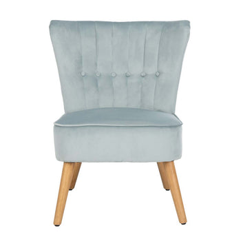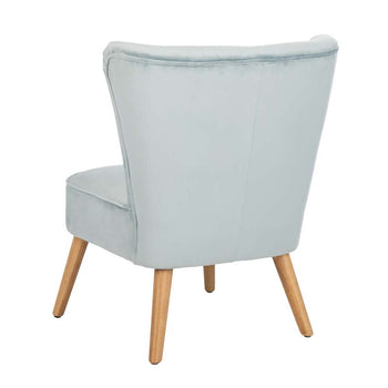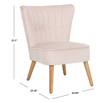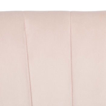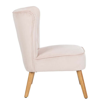 A new design classic, this Mid Century accent chair will be the most coveted spot in the living room. Created to highlight its vintage vibe, its generously filled pale pink velvet upholstery complements the natural wood finish on its retro style legs.