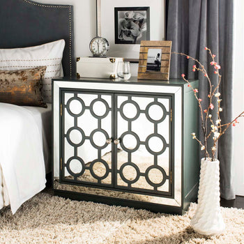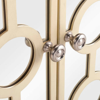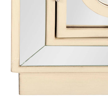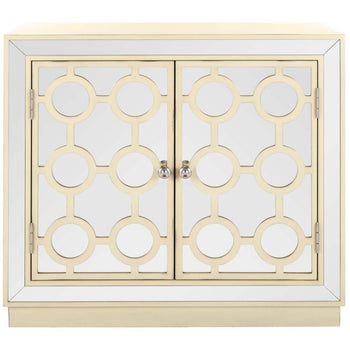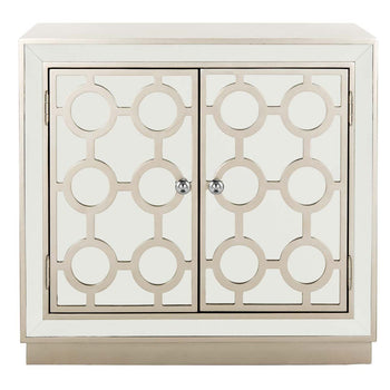 Transform your's Decor into an icon of Old Hollywood glamour with this Kaia Chest. Kaia's shining mirrored doors flaunt an Art Deco geometric lattice that is undeniably eye catching, perfectly balanced by an antique beige finish.