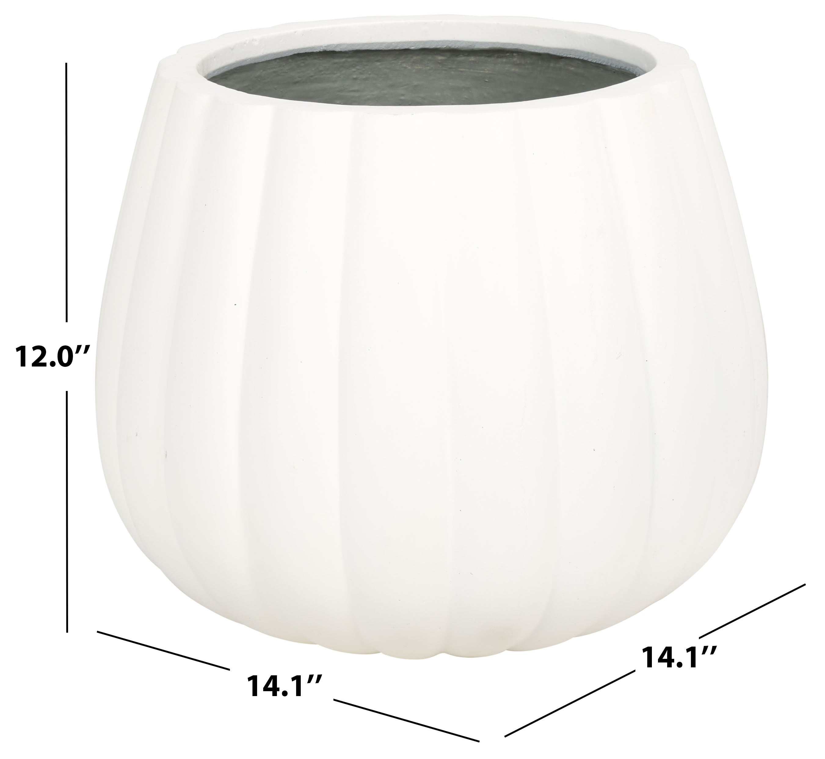 For happy and healthy plants in any contemporary outdoor space, this Kaston Planter is the perfect fit. The textured, pumpkin-inspired ripples on Kastons concrete organically enhance surrounding sprawling vines and summertime blossoms.