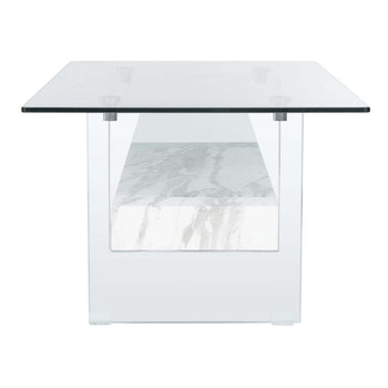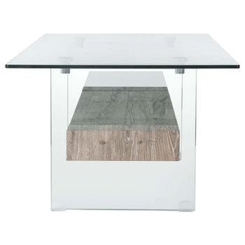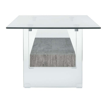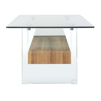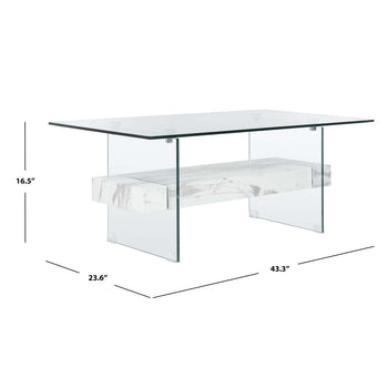 Inspired by the design of Paris'stop art foundation, this rectangular modern glass coffee table makes a grand statement in any living room. Crafted almost entirely of transparent glass, the gorgeous finish on its single shelf lends warmth and character.