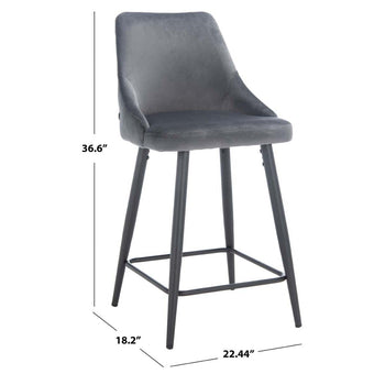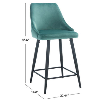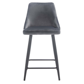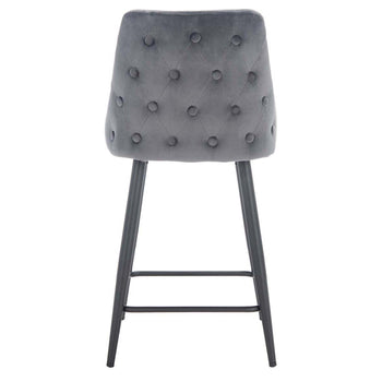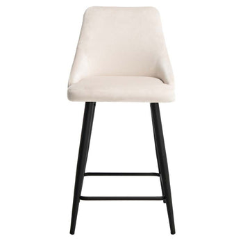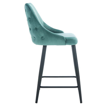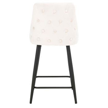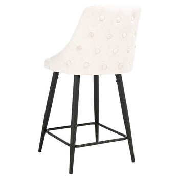 Give your kitchen or breakfast nook a glamorous upgrade with this Kelsey Counter Stool. Kelsey's plush beige velvet and button-tufted back highlight its subtly sculpted seat, beautifully elevated by open legs in a sleek black finish, bringing delightful decorative drama to any interior.
