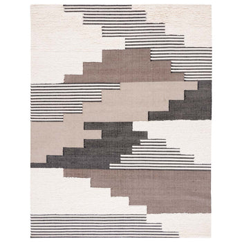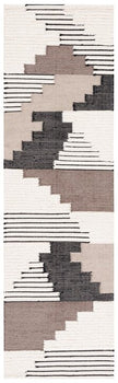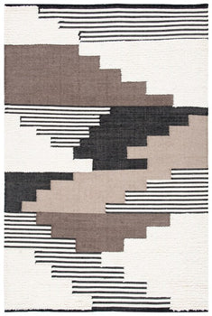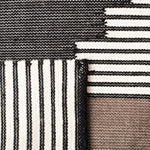 Our runner rug boasts a striking geometric pattern that captures the eye with its bold contrasts and modern abstract design. The pattern, as can be observed in the image, features a blend of black, ivory, and shades of gray, arranged in a sophisticated style that plays with depth and perception.