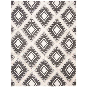 Elevate your living space with our exquisite 8' x 10' handwoven area rug, meticulously crafted in India. This large rectangular rug features a timeless black and ivory palette, creating a chic and versatile foundation for any room. The eye-catching design, inspired by the pattern in the provided image, showcases geometric diamond motifs surrounded by contrasting borders, introducing an element of sophisticated visual texture.